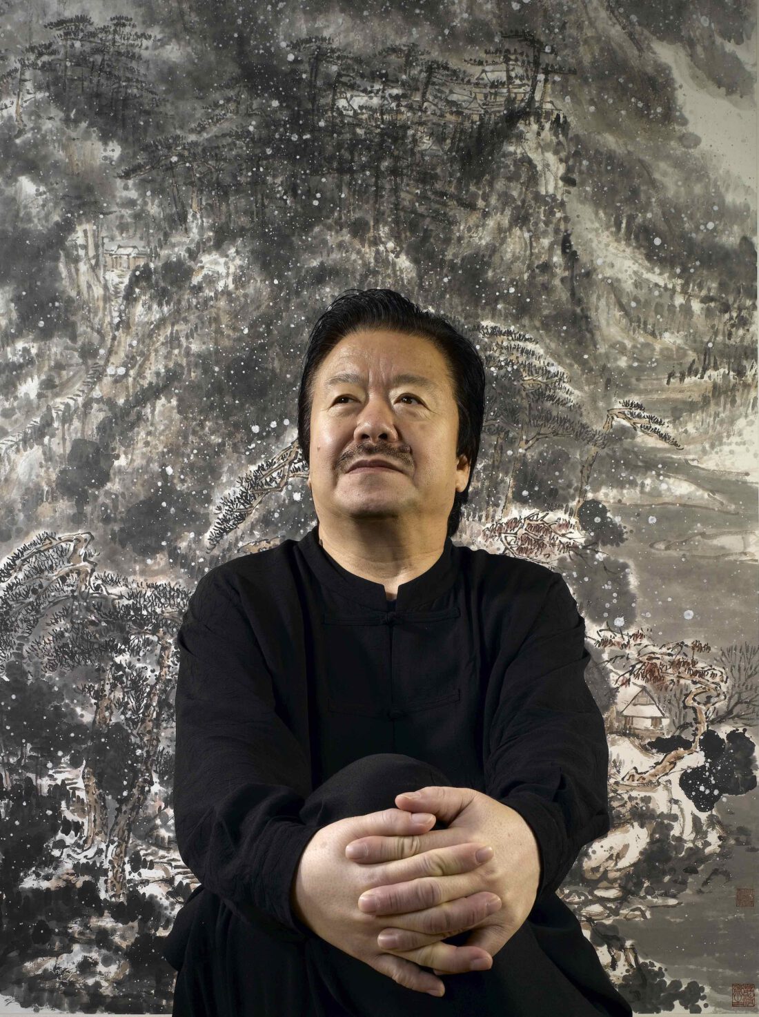 Cui Ruzhuo (né en 1944 à Pékin) est l’un des artistes les plus importants de notre époque. Travaillant à l’encre et en calligraphie, il régénère l’imagerie et les techniques traditionnelles pour représenter des paysages de montagnes chinoises. Influencé par la tradition historique de la peinture lettrée, Cui a développé sa propre méthode, consistant à appliquer sur le papier plusieurs fines couches de lavis d’encre, puis à préciser les formes au moyen de contours sombres. Les œuvres qui en résultent possèdent une qualité méditative complexe. Dans ses premières années, Cui a étudié auprès de Li Kuchan et a enseigné à l’Académie des arts et du design de Pékin avant de s’installer aux États-Unis en 1981. Après son retour en Chine au milieu des années 1990, il a commencé à exercer en tant que directeur de thèse (doctorat) à l’Académie nationale chinoise des arts. Cui a présenté des expositions personnelles dans de nombreux musées de renom, notamment le Musée national de Chine, le Musée du Palais à Pékin, le Hong Kong Arts Centre, le Musée national d’histoire de Taipei et le Musée d’art de Macao. Parmi d’autres distinctions, il a été nommé président de l’Institut de recherche sur la peinture chinoise au sein de l’Académie du Musée du Palais. Cui vit et travaille à Pékin.
